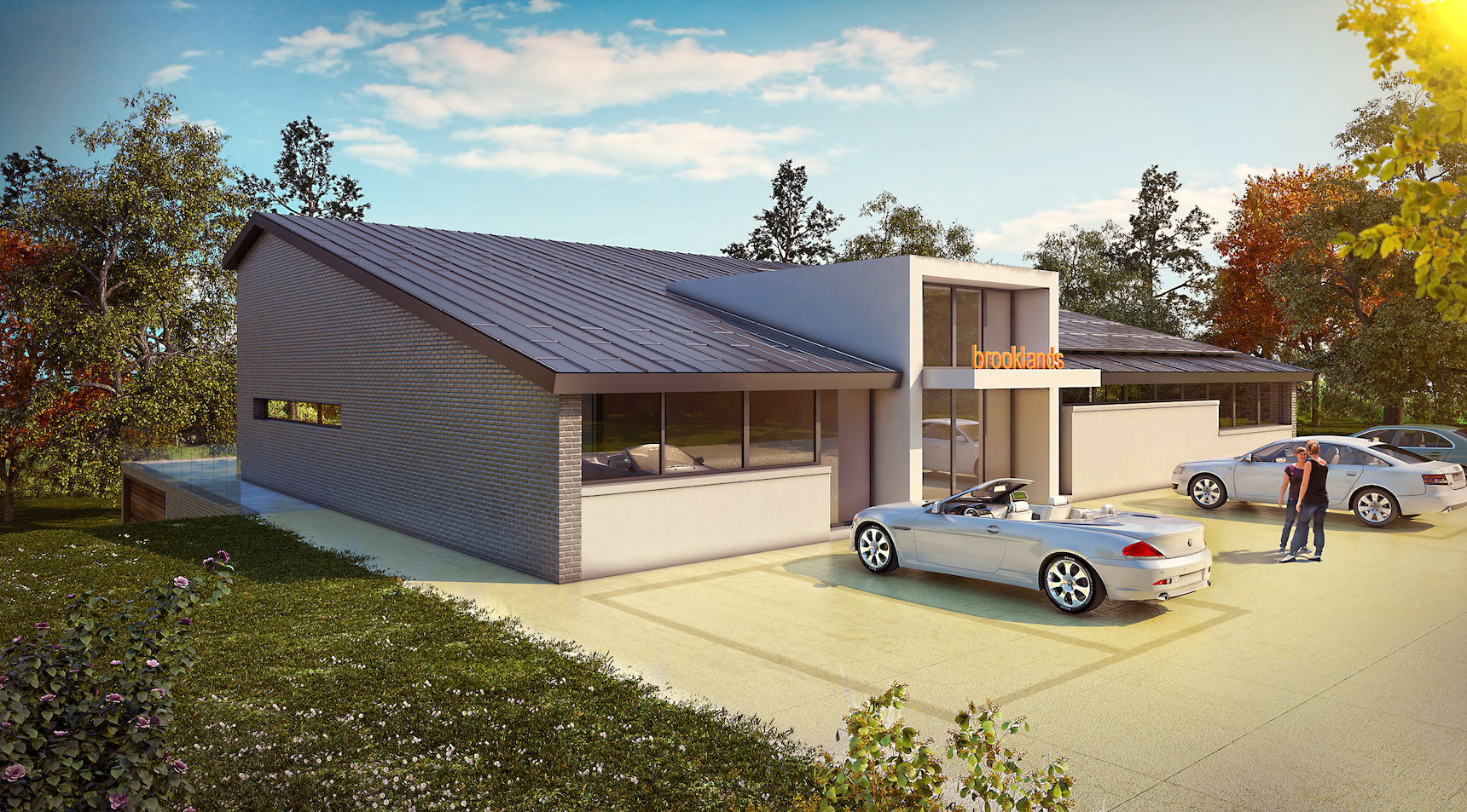 Spaces included a large conference hall and secondary offices with as much parking as could be provided on site.