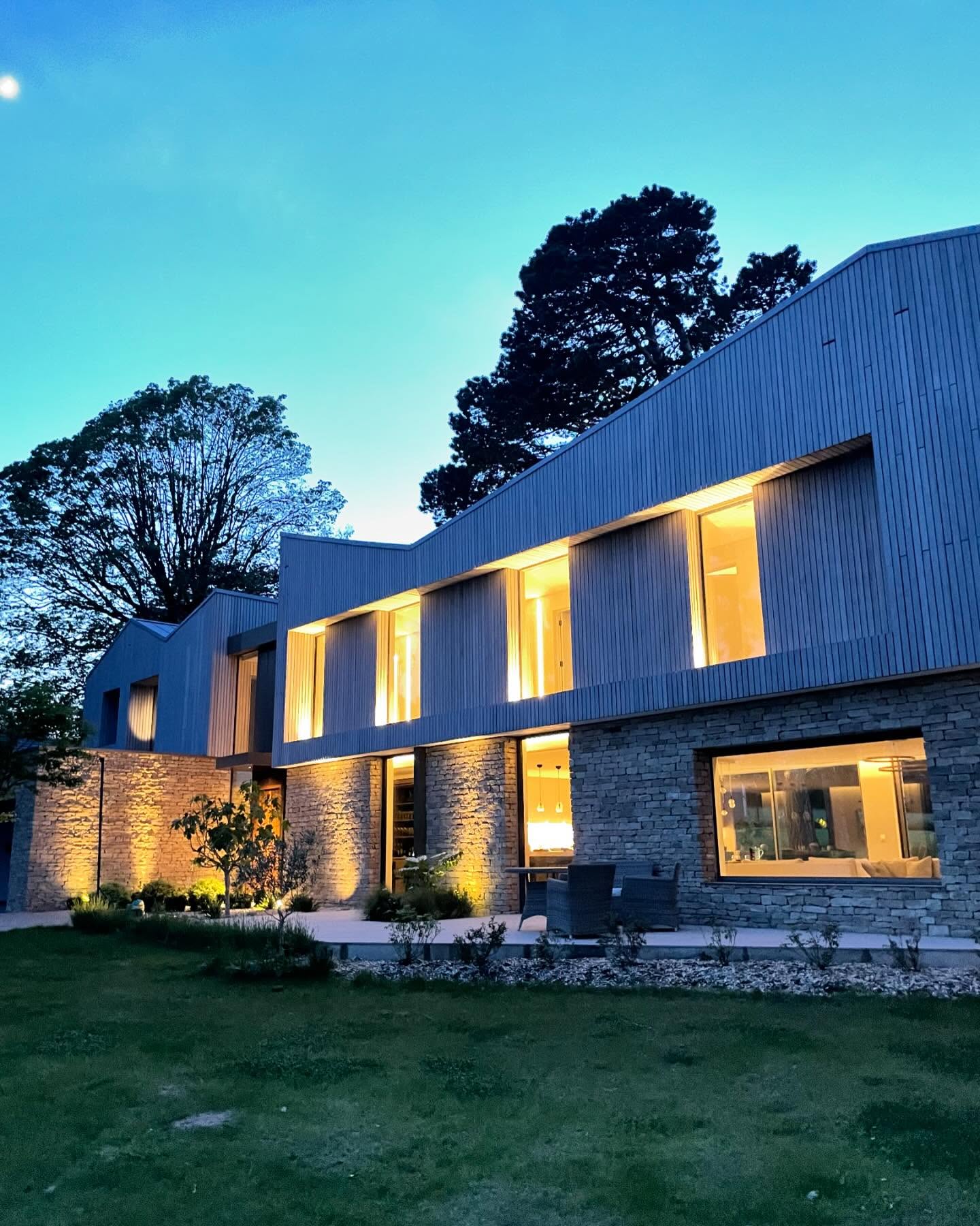 With 5 bedrooms, 3 ensuites and large open plan living and workspaces the house maximises on the external spaces that surround the site.
